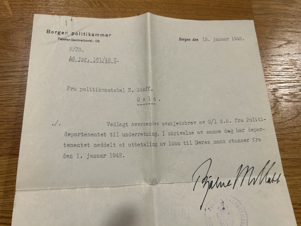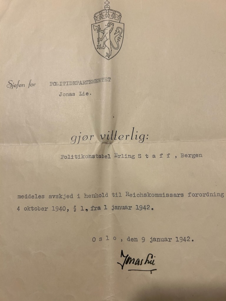 Onkel Erling var gift med tante Betten (Elisabeth Sandvik). De bodde en periode i Bergen hvor han jobbet som Politivaktmester og Politisjåfør. 27.06.1940 ble han arrestert (Grunn: Granskning)Han satt først i Bergen kretsfengsel, deretter i Møllergata 19 i Oslo, før han ble overført til fangeleiren Germersheim 01.04.1941. Benådet ca desember 1941.