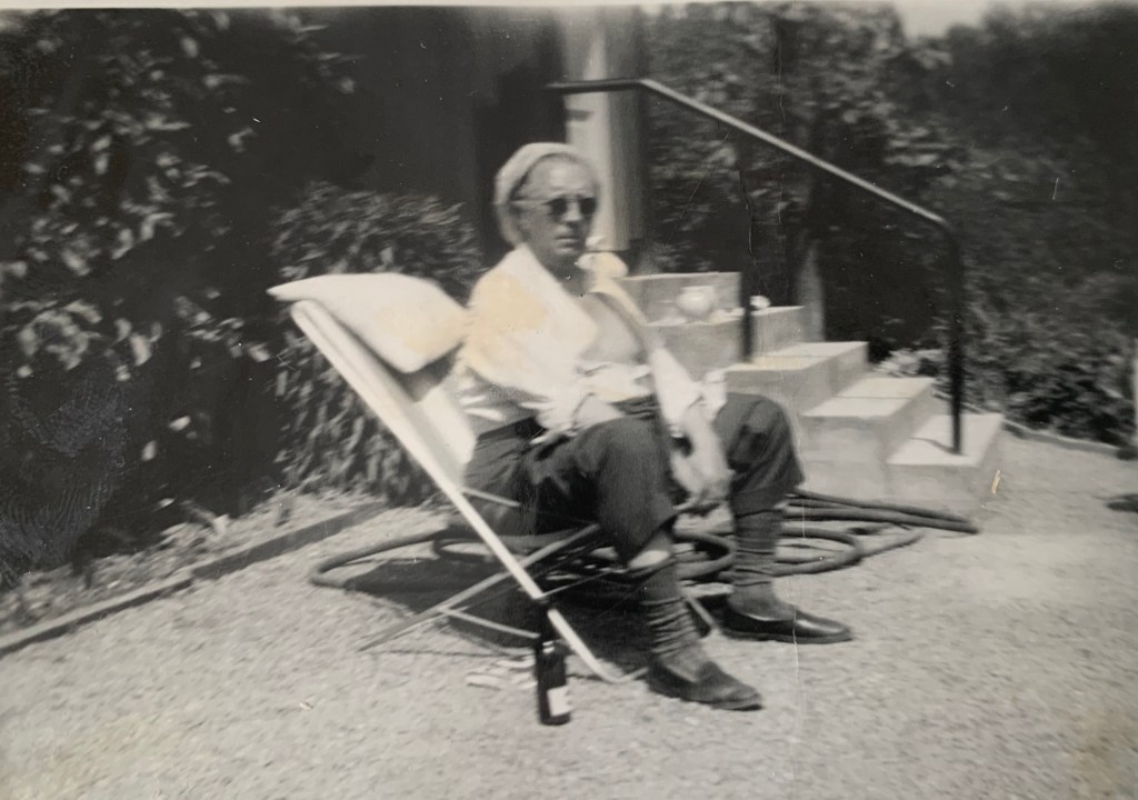 «Om sommeren kom tre av fars svogere. Det var helst på lørdager. De skulle spille Bridge. Før de begynte med bridgen, kastet de på stikka utenfor huset. De fire svogerne spilte bridge og fikk seg noen drinker. (Pjolter). jeg så aldri far beruset, men det hendte nok at han fikk litt i overkant. Da var han dårlig dagen etter. Mor sa da hver gang «Nå må dere være stille, for far har gulsott».
